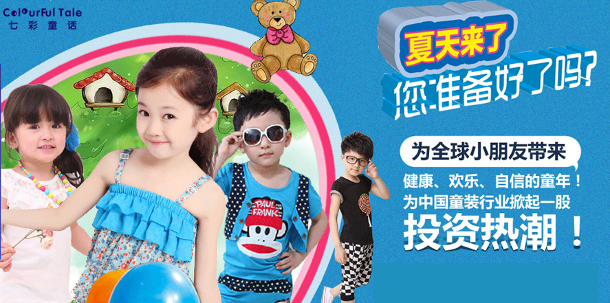 用健康打动父母,用智慧捕捉童心,让孩子与时尚随行,纯天然、零添加、最健康的童装尽在七彩童话品牌童装折扣店,突破营销底线,打破行业竞争格局的超低价折扣品牌童装,七彩童话品牌童装超低价品牌定位,成熟的童装运作市场,为创业人士开辟一条新的空白商机领域,七彩童话品牌童装为童装业构建了新的商业蓝海,带来了新的盈利增长点!