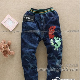 [库存]加厚童裤批发加厚童牛仔裤批发加绒小孩牛仔裤批发印花童装牛仔裤