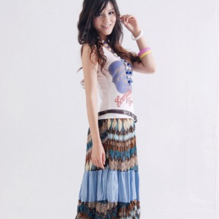 供应-珍妮女装韩版波西米亚民族风拼色背心连衣裙822