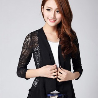 2014春夏 新款雪纺衫 荷叶边开衫蕾丝衫 韩国雪纺衫小外套