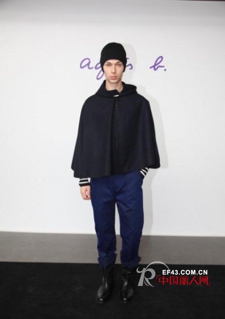 Agnès b. 的时装系列当然不可缺少经典的海军风: 横间tee和双排扣的pea coat是衣柜内的必物品。今季中不同长度的pea coat,透过特别的颜色配搭,视觉上带来无限惊喜,令人目不暇接。另外以杏色、啡色等暖色系为主调,并着重以不同布料及风格的单品互相配衬。由便服到别致服饰,或以粗花呢、开士米羊毛及法国绒等质料的混搭,各种对比均可呈现出时尚的个人品味。当剪裁高雅的晚礼服现身、配上蝙蝠翼剪裁的上衣、斗篷、长黑袍、连帽上衣及黑色高帽,犹如上演一幕具有神秘色彩的吸血鬼系列影片,为今季主打的吸血蝙蝠主题划上圆满的句号。