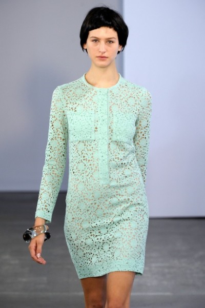上一季流行的宝石绿系列在13春夏继续发酵,并演变为非常新鲜的绿色系,从明艳亮丽的翠绿到珠绿,再到婉约浅淡的薄荷绿。Gucci的13春夏系列堪称历年来最为积极的系列,珊瑚红、亮蓝、翠绿等明快的色调轮番上陈,让秀场一下子“High”起来。而Victoria的蕾丝与薄荷色结合,尽显女孩干净俏丽的小清新风格。