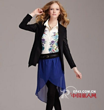 很多人都觉得小西装是要搭配裤装才会好看,这样才会显得职业,其实小西装也可以搭配裙装哦,这款黑色小西装款式内搭连衣裙款式,不仅很有文艺范,还很时尚哦。(图片来源:非粼女装 2013秋冬新款)