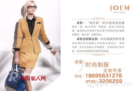 卓影—“轻正装”的中国领导品牌,秉承“美、爱与梦想”的理念,提出了简约易搭,融合职业女性的干练从容与传统女性的温柔优雅的“轻正装”品牌定位。