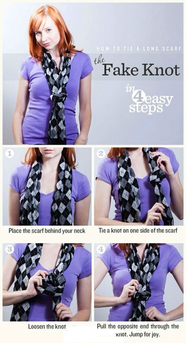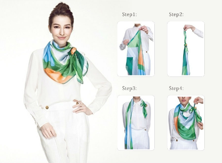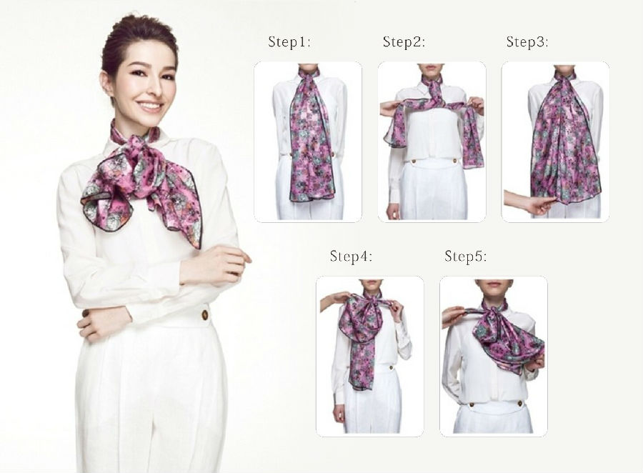 Step2:再将丝巾系一个活结在脖子处。
