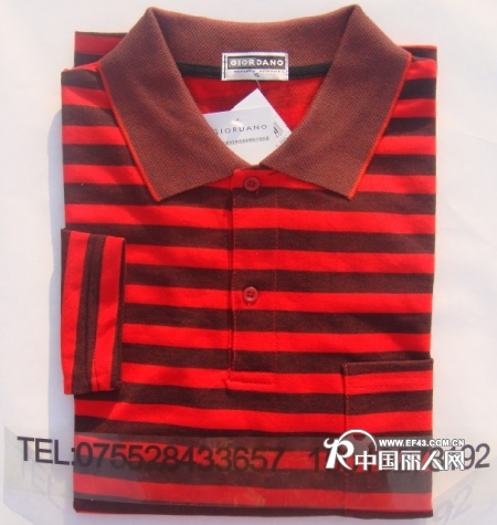 佐丹奴男装翻领长袖T恤批发,佳利服装有限公司位于深圳市布吉镇,主营 佐丹奴,POLO,KAPPA等休闲T恤。公司秉承“顾客至上,锐意进取,诚心第一”的经营理念,坚持“客户第一”的原则为广大客户提供优质的服务。欢迎惠顾!纯棉面料、做工精细,齐款齐码.穿着舒适透气吸汗,短袖8至12元,长袖秋冬装9至13元批发(300件起批发),承接大小量订做加工制服、厂服、广告衫、校服.可发货或亲自上门拿货.量大从优,自产自销,一手货源,真正批发商中的生产厂家。佐丹奴纯棉T恤批发专业厂家,欢迎来电咨询订购,联系电话:0755-28433657 15019278192唐小姐
