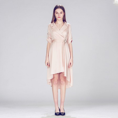 【供应】粉色气质名媛款不规则连衣裙 中长裙 轻奢个性知性