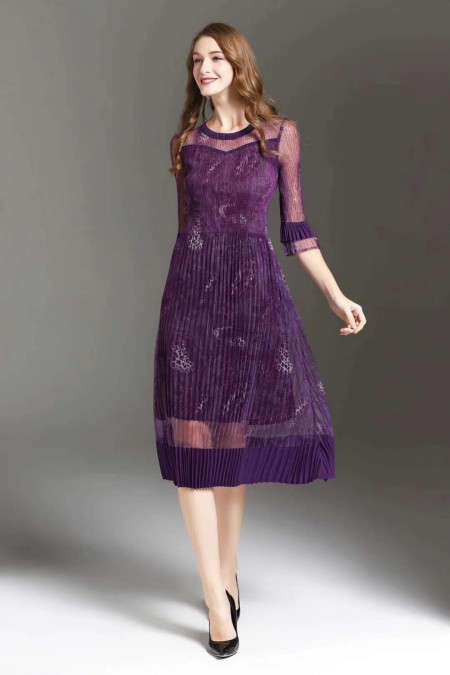 三宅一生高端褶皱连衣裙2020秋️️气质显瘦。特殊打褶工艺,高弹力,免烫易搭理☢️☢️加强穿着者的整体性,设计感与众不同质感柔软,舒适透气。网纱拼接,绣花贴布,质感无敌100%连衣裙,性价比无敌