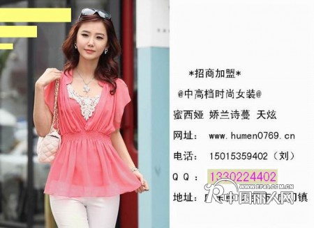 品牌女装:诚招加盟代理批发商:欢迎来信来电咨询加盟