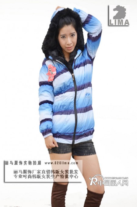 连帽毛领丝绵大衣,拉链开身款,横条渐变色系,集中今年主打流行元素。紫兰、褐红、大红三个色系供选!清新、时尚、保暖不厚重,冬天爱美达人必备款!各式女式针织衫,女式毛衣 ,背心夹克衫,女式卫衣绒衫,女式风衣大衣等,尽在广州丽马服饰有限公司,最大最专业时尚女装批发网站!
