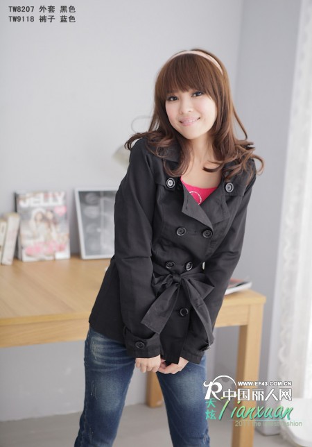 【招商】代理批发 女装秋冬款 现货时尚韩版双排扣束腰保暖外套8207
