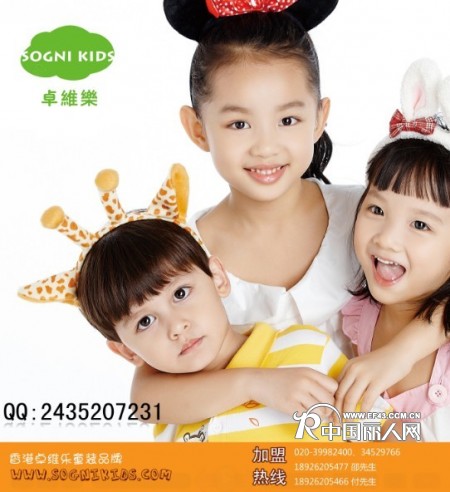 由香港卓维国际集团注册运营的香港SOGNI KIDS童装品牌2006年正式创立,目前已在香港奥海城、崇光百货,广东天河城百货、广百百货、天和百货、海雅百货、天虹百货等知名商场系统都开有直营专柜,全国各地也有开设100多家加盟店,分别在各地一线百货商场如上海新世界百货、百盛、万千百货,湖南湘潭、邵阳、怀化、娄底、常德、益阳、郴州等步步高百货,西安世纪金花、万千百货、民生百货、银泰百货、延安百货,贵州智诚百货、百盛、国贸百货,成都摩尔百货、茂业百货,沈阳盾安百货,山西华若百货、华林商厦,重庆新世纪百货等等皆有进驻。现在全国在火势招商中,加盟请联系:13925751896 周经理 QQ:891698010