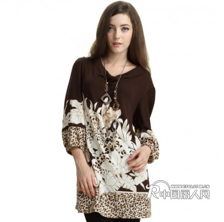 【供应】2012秋装新款女装 中袖欧美风豹纹上衣 中长款