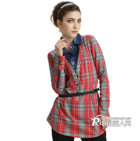 商品品名 假两件套格子衬衣