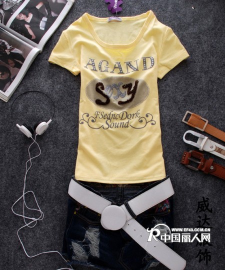 招商-女式短袖T恤 韩版短袖T恤 纯棉短袖T恤 手摇钩花T恤