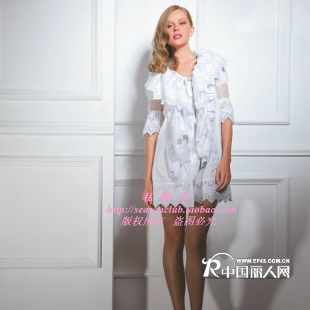 招商-DEFENON 翻领刺绣 夹腰带收腰 大花边连衣裙 来看看