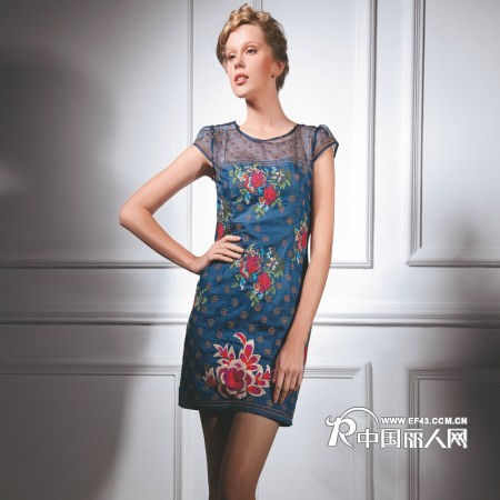 【招商】【限时抢购】DEFENON 新品牛仔十字绣,黑蓝色连衣裙