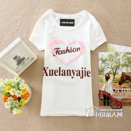 供应-西子名媛手摇绣花图案纯棉T恤