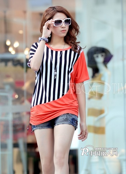 【求购】条纹宽松棉T恤批发不规则韩版短袖T恤批发