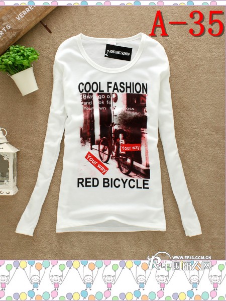 供应-杭州服装批发纯棉t恤女长袖白大理服装秋冬装长袖t恤批发