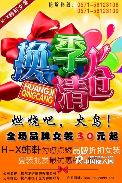 炎炎夏日,酷热的天气也提醒着我们夏季已经来了一段时间,H-X韩軒作为一个一直引领时尚潮流服饰的先行者,在秋冬服装隆重上市之际,特推出特价夏季女装,以感谢新老客户一直以来的支持和厚爱。