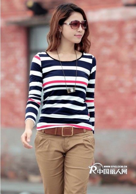合作-新款秋冬装时尚女款韩版条纹长袖圆领T恤批发