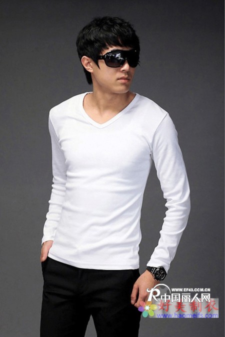 【供应】休闲男装V领T恤批发长袖印花男T恤秋季男装T恤批发