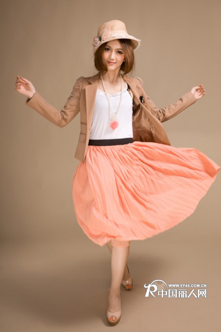 裸粉色的小西服,搭配纯洁神圣的蕾丝打底连衣裙,简单的两件搭配,却从整体上看到了自然时尚的魅力。裸粉色是一种代表者梦幻浪漫的童话色彩,把女性对浪漫的幻想勾勒到了极致;同时,蕾丝也是专属于女性的美丽元素,一横一竖,点滴之间,尽显服装魅力。