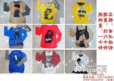 长袖T恤批发 东莞秋季长袖T恤批发 纯棉长长袖T恤批发广州虎门低价男女装T恤货源批发时尚潮流T恤批发靓女装我公司现有大量长袖女装男装T恤,价格低至5元/件。100件起批。多款多色,图案颜色多样,质量保证,配有独立包装,款式休闲,量大从优,适合销往亚洲地区的国家。量大从优,有需要服装的赶紧联系我!欢迎您的来电!网上订购物流发货代收货款.本公司支持混批,可以自己选择款式