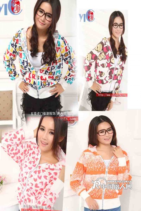 韩版时尚个性拼色卫衣开衫批发秋季个性连帽卫衣批发,加厚卫衣批发厂家女装卫衣批发韩式卫衣批发,批发价:¥13.00韩版可爱猴子印花女式卫衣 韩版可爱大嘴猴印花女式卫衣 厂家直销批发。2012年流行卫衣批发虎门服装批发,新款女装韩版卫衣,中长款卫衣批发,自产自销方案,价格便宜实惠,依潮服饰长期供货,多款多色,可来样加工。欢迎通过网络、电话联系或亲临本公司洽谈。