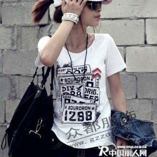 供应-四川成都最便宜时尚短袖T恤批发圆领印花T恤批发女装长袖t恤