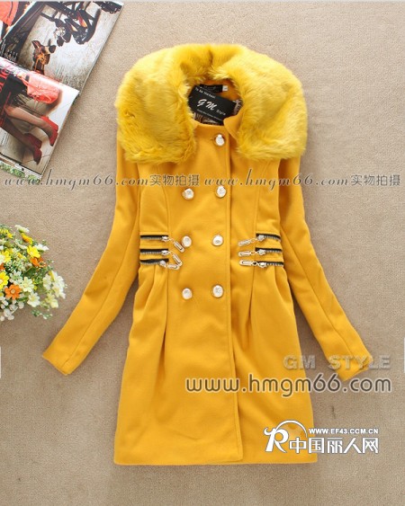 【招商】时尚女装毛领呢大衣批发新款呢子大衣批发