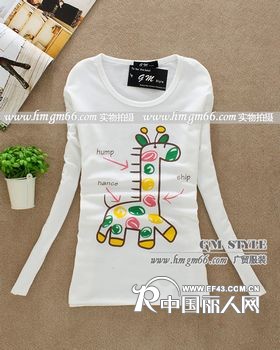 供应-长袖白色T恤批发女装长袖白色T恤批发韩版卡通女装白色T恤批发