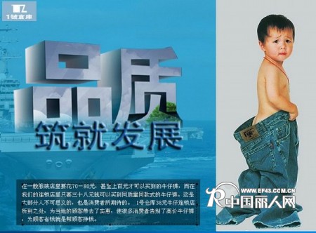 「1号仓库38元牛仔连锁店」经营理念:针对牛仔低端市场,服务广大普通消费者。