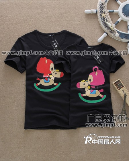 【库存】夏季情侣服装批发网夏装情侣T恤批发市场汉正街夏季圆领情侣装批