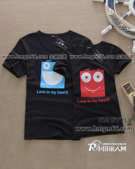 【库存】短袖情侣T恤批发印花情侣T恤批发时尚流行情侣装批发广州上海北