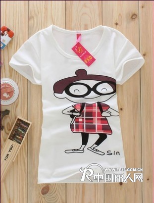 【供应】韩版纯棉潮流眼镜女孩印花女装短袖T恤厂家批发