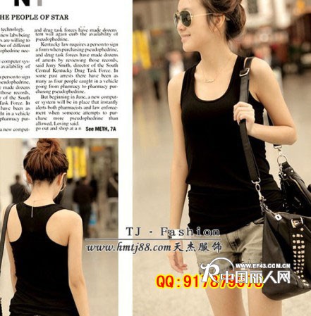 女士吊带背心的我刚租的摊位想卖吊带批发吊带背心女装背心韩版背心批发厂家直供 、一手货源!所有衣服独立包装、吊牌齐全、均码、圆领印花,颜色很多!想到的颜色基本都有,随季节变化 一年四季不间断供货,混批发100件起!我们以很低的价格批发,不挑款和颜色!多款多色配货发货,不存在说几十件是一个颜色一个款的情况!我们会配均匀的!适合超市、卖场、店铺、练摊、夜市等甩卖,我们保证质量,非质量问题谢绝退换!走物流代收货款业务,支持货到付款!支付宝担保交易付款!男女可混批,量大有优惠,请有需要的老板。来电商谈,一起共赢 因产品更新较快 具体款式和价格以网站为准或请咨询客服QQ或是来电咨询全是实物拍摄,技术有限,未做任何美化处理.质量价格 款式 可以在市场占领强大的优势!欢迎上门看货 上门选购 可支持支付宝货到付款,广东省内全金额货到付款方式,详情请登批发网 联系人:李先生批发网站:http://www.hmtj88. com 电话:13763271449 (0769-82184091) 咨询QQ:917879073 虎门天杰服饰批发