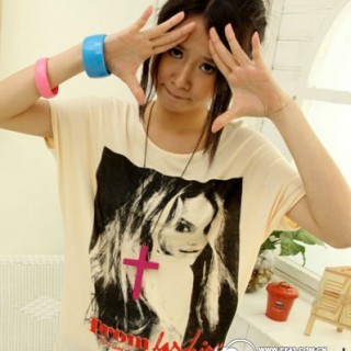 供应-深圳黄贝岭商城虎门服装批发韩版李孝利拼图T恤时尚李孝利V领T