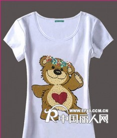 【招商】韩板爆款亮片烫钻小熊修身女装T恤工厂直批