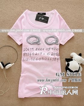 【招商】双面印花女装T恤批发弹力韩版印花T恤批发潮流背部前面印花T恤
