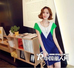 【供应】欧尚乐品夏款宽松撞色拼接风格连衣裙