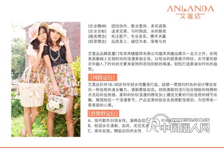 自公司成立起,本着与时俱进,不断创新的经营理念,并借鉴国际化的时尚理念和品牌管理模式进行运作。讲究时尚、品味、智慧、美貌、活力、个性的生活格调的国际潮流女装和生活方式展开,巧妙融合了现代欧美时尚和日韩潮流,倾情诠释现代都市女性热力四射、时尚潮流的生活方式。坚持走品牌时装平民化的路线,年轻的都市中产阶级女性为目标顾客。品牌在中国主要大中城市的中高端商场中开设有专柜,专卖店,深受大众女性喜爱,并在消费者心目中竖立了较高的品牌形象和知名度。