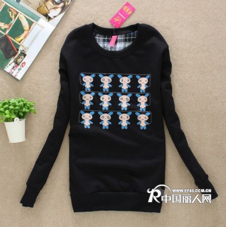 供应-偶像范冰冰图案中长款卫衣牛奶丝绒长袖T恤批发