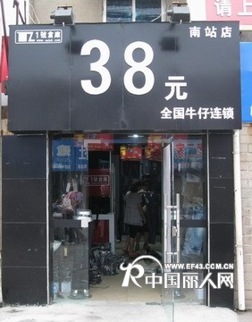 「1号仓库38元牛仔连锁店」经营理念:针对牛仔低端市场,服务广大普通消费者。