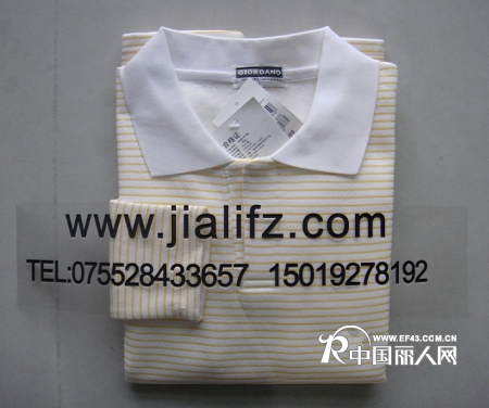 佳利服装厂佐丹奴纯棉休闲T恤生产厂家,纯棉面料,做工精细,全部双吊牌,按照佐丹奴新款制作,齐色齐码正品货,夏装短袖7-12元,长袖秋冬装8-16元批发,300件起发物流,可以混批,也可以预付定金20%,余款货到当地见货付全款,也可到厂里提货,专车接送,量大从优