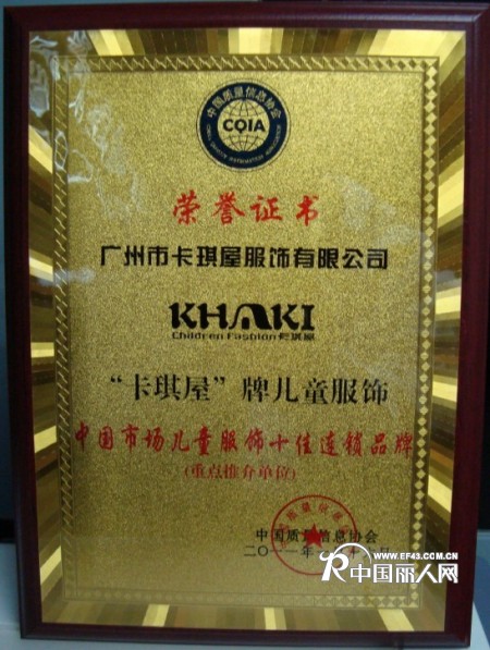 卡琪屋服饰是一家集研发、生产、销售为一体的综合性高档时尚童装品牌公司。自品牌创立以来,一直视设计研发为企业灵魂,以新时代儿童向往的个性与时尚为目标,创立了时尚酷炫的“卡琪屋”童装品牌,卡琪屋专注为3-15岁儿童提供时尚、酷炫和个性的童装,为每一位孩子找到属于自己的精彩童年。5年征程,卡琪屋的足迹已遍布神州大地,营销网络遍及华南、华北、华中、华东、西南、东北等全国300多个大中城市及地区,近600家特许经营加盟店、连锁专卖网络。