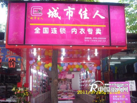 深圳市城市佳人贸易有限公司于2002年成立,公司是一家专营内衣产品的现代化连锁企业。公司的主打品牌为“城市佳人、纳尔丝、情系一身”。经过长期的良好运作,已在广东省、湖南省、陕西省、福建省、河南省、江西省、浙江省、安徽省、广西省、江苏省、山东省、上海市、四川、重庆、新疆、甘肃、北京、云南等地占有稳定的市场,目前全国已有1000多家加盟店。城市佳人公司拥有良好的商业信誉和品牌影响力,以及连锁经营管理领域的成功经验