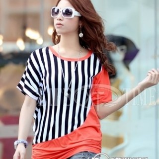 [招商]新款女士条纹短袖T恤批发宽松型纯棉T恤批发