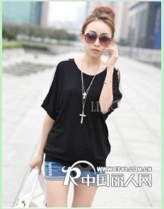 [招商]蝙蝠袖宽松韩版T恤批发新款时尚超模印花背面拼接T恤批发